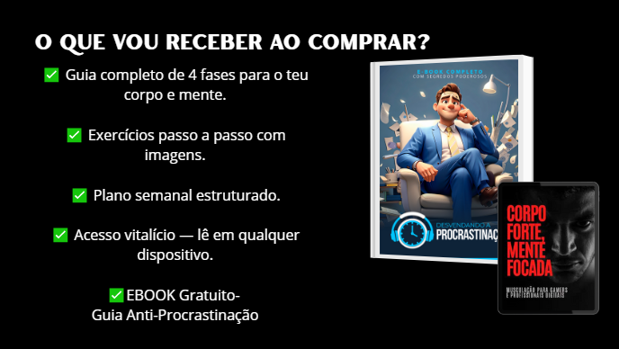 Sem complicações, sem desculpas. Planos rápidos de 20 a 30 minutos, adaptados à rotina de gamers e profissionais digitais, que podes fazer em casa com pouco ou nenhum equipamento. A chave está na consistência: pouco tempo, mas resultados duradouros.